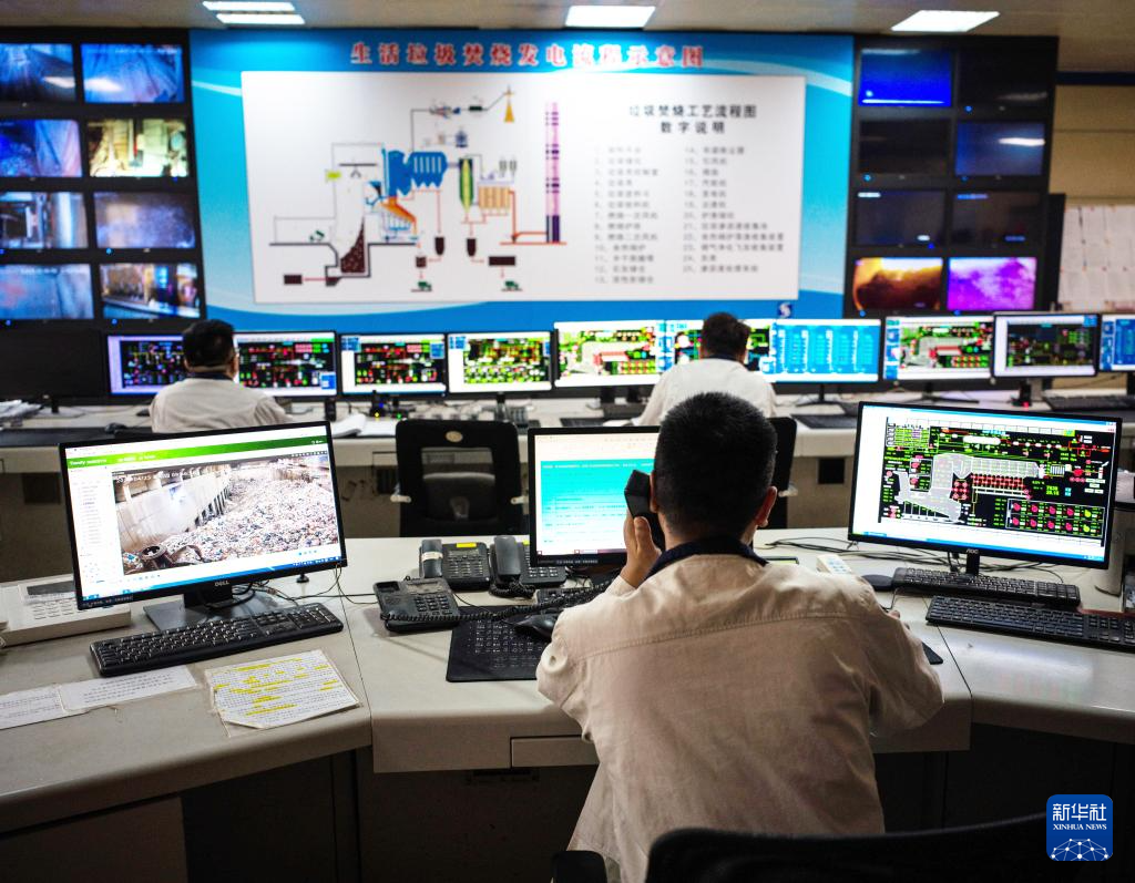 4月23日,工作人员在天津滨海新区循环经济产业园垃圾焚烧发电厂中控室工作。新华社发(兰红光摄)pagebreak