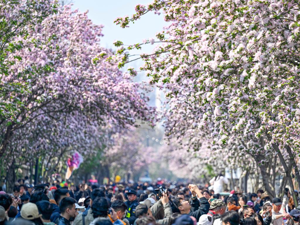 一朵海棠何以为历史文化街区注入新活力 4月的天津,春意正浓。和平区五大道历史文化街区的大理道上,西府海棠迎春绽放,粉白花瓣随风飘落,与白墙青砖相映成趣。 2026-04-06 16:52:12