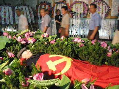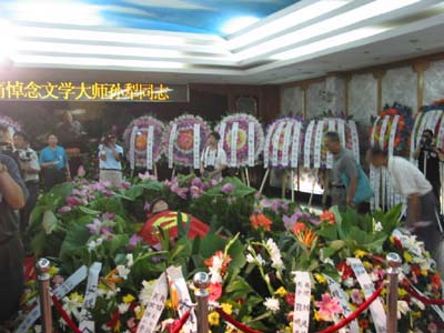 新华网天津频道7月16日电 中国当代文学大师孙犁遗体告别仪式昨天在天津举行。孙犁1927年开始文学创作,后成为新中国文学史上极负盛名的小说、散文家,被认为是著名文学流派“荷花淀派”的创立者。 (摄影:马平)