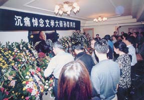 新华网天津频道7月15日电(记者张淑英)一代文学大师孙犁静静地走了,7月11日6时因病在天津辞世,享年90岁。他在寂静中离开亲人,离开他热爱的读者。今天上午,天津市委书记张立昌、市长李盛霖等市领导人和京津等地的社会各界人士及他的同仁、朋友、亲属与读者,在天津北仓殡仪馆送别这位人民文学家。